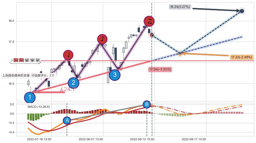 ➢ 预测:2022-08-16 11:00,【小幅回撤】稳定目前上涨趋势的前提下,预测价格:17.22