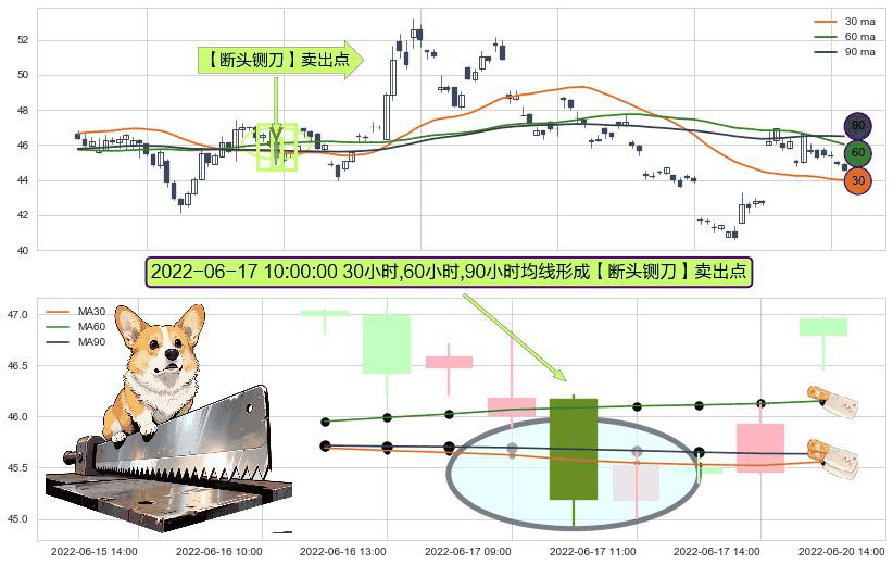 ⚀ 2022-06-17 10:00:00小时显现 30小时-60小时-90小时均线 【断头铡刀】卖出点 看空信号,后市看跌,卖出