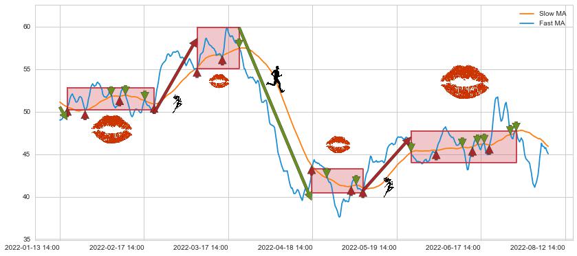 05-25 10:00至07-18 14:00 慢线与快线多次接触,存在上下穿越,有缠绕