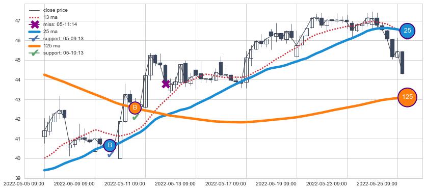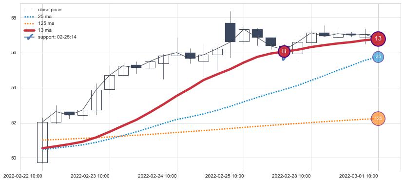 ⚂ 2022-08-05 14:00:00小时突然冒出一根大阳线,一下子顶穿三条均线且收盘价收在各条均线之上