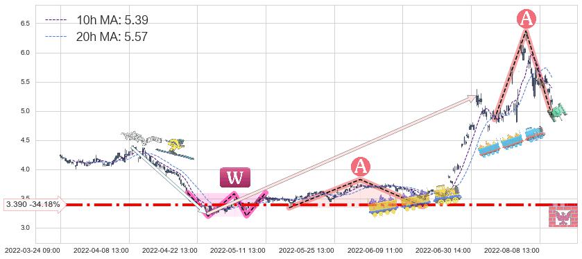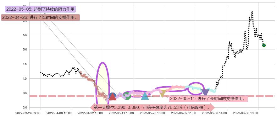 ♘ 支撑价格位3.390,可信任强度76.53%,距离最后交易2022-08-12 14:00形成的收盘价格5.15相差 -34.18%