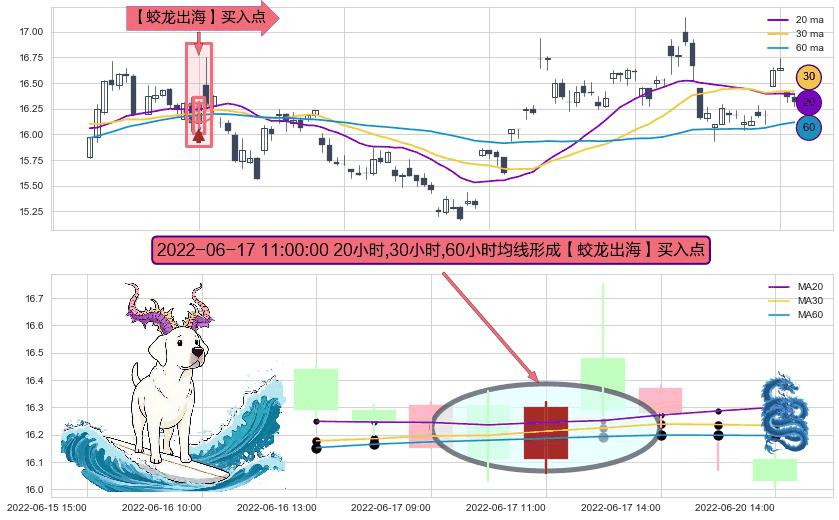 ⚀ 2022-06-17 11:00:00小时显现 20小时-30小时-60小时均线 【蛟龙出海】买入点 看多信号,后市看涨,买入