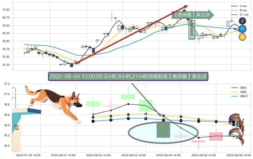 ⚀ 2022-08-04 13:00:00小时显现 3小时-8小时-21小时均线 【绝命跳】卖出点 看空信号,后市看跌,卖出