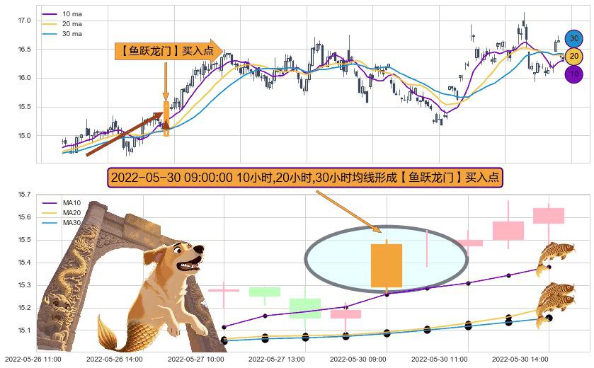 ⚀ 2022-05-30 09:00:00小时显现 10小时-20小时-30小时均线 【鱼跃龙门】买入点 看多信号,后市看涨,买入