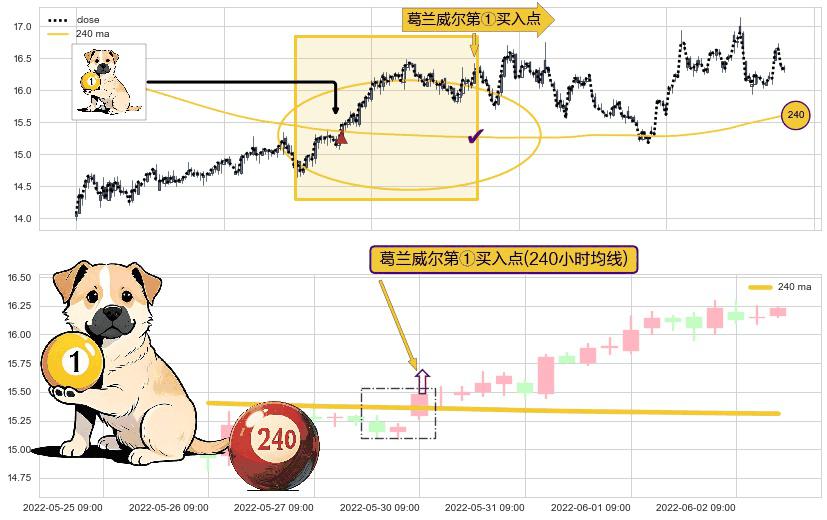 ⚀ 2022-05-30 09:00:00-小时显现 葛兰威尔均线 240小时均线 第买①入点 走势反转见底信号,后市看涨,买进信号