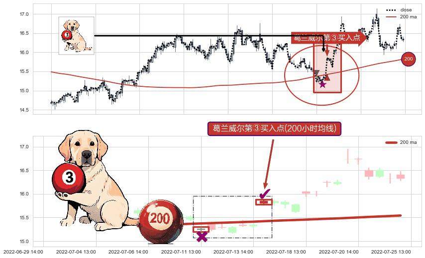 ⚀ 2022-07-14 13:00:00-小时显现 葛兰威尔均线 200小时均线 第③买入点 上升趋势的中继信号,后市看涨,买进信号