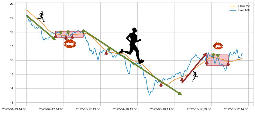 06-14 14:00至07-18 14:00 慢线与快线多次接触,存在上下穿越,有缠绕