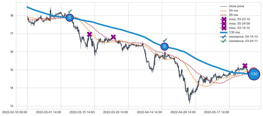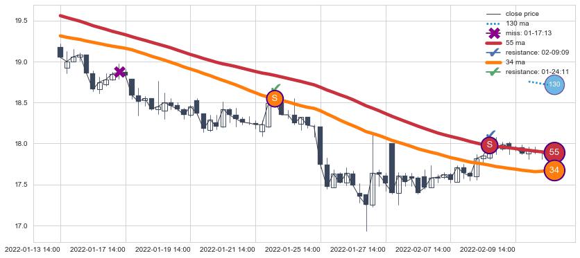 ⚂ 2022-07-11 13:00:00-小时均线向下破位,2022-07-14 13:00:00-小时重新上穿突破均线,均线支撑再次生效