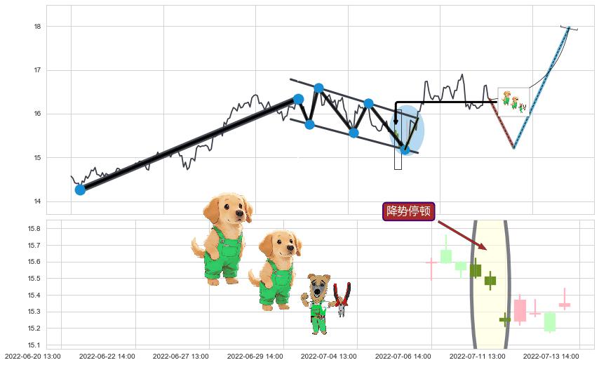 ➢ 【买1】: 激进型 买点 →(07-18:13: 15.89 )形成突破降⚑旗形【整理】形态