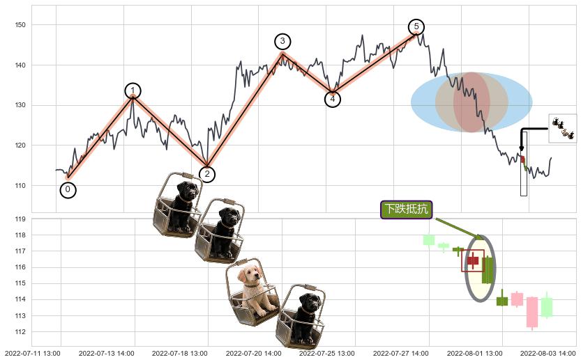 ➣ 收盘价(07-25:13: 116.95 )→回踩→第一根k线低点(07-21:14: 116.54 )