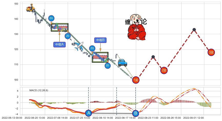 从2022-06-16 13:00至2022-08-12 14:00,共包含87个小时,阶段股价下跌-15.41%,阶段股价变动位移路程比: 1 : 4