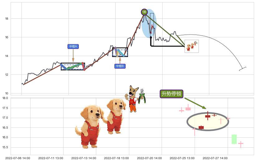 ➢ 最后的上涨趋势2022-05-25 10:00至2022-07-22 14:00:存在破位迹象,后续小调整或者反转下跌