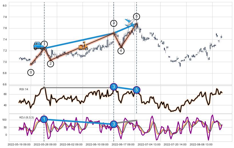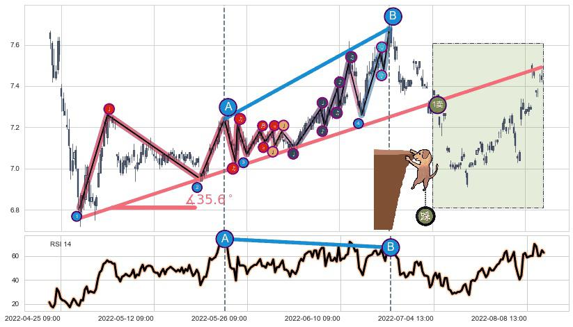 ➢ 最后的上涨趋势2022-04-27 09:00至2022-06-20 14:00:存在破位迹象,后续小调整或者反转下跌