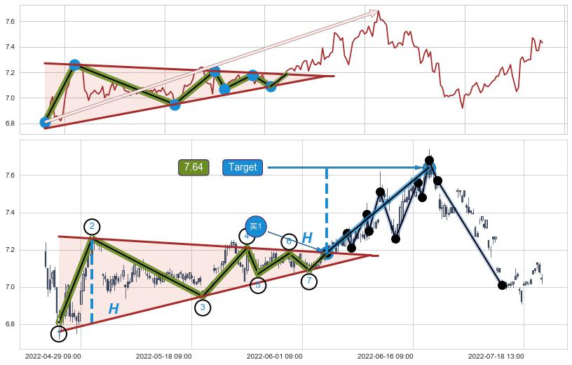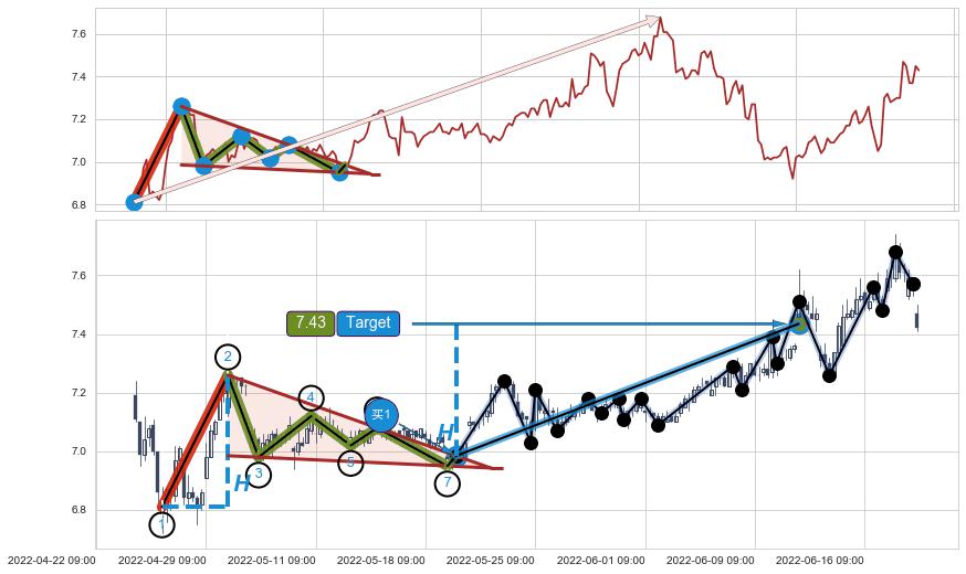 ➢ AI预测: 假定反转启动后, 第❷目标位置(09-22:14, 7.27)