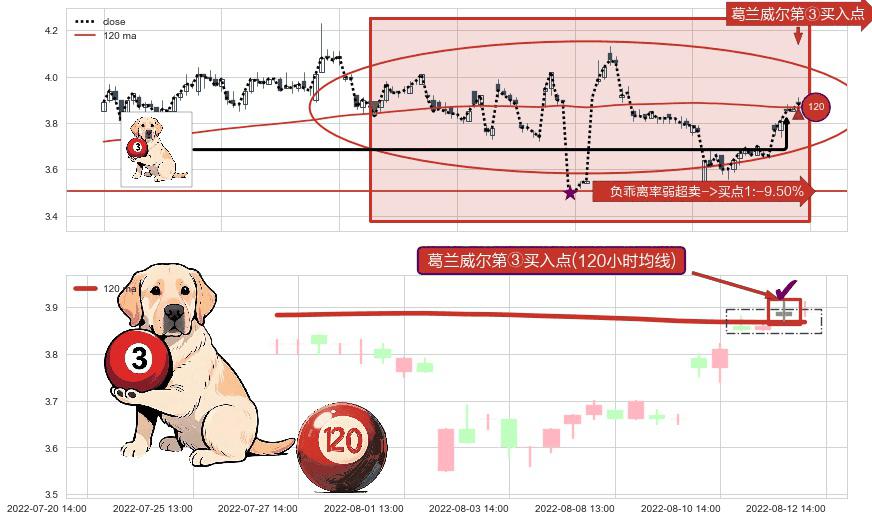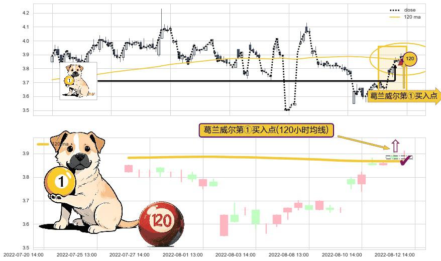 ⚀ 2022-08-12 13:00:00-小时显现 葛兰威尔均线 120小时均线 第买①入点 走势反转见底信号,后市看涨,买进信号