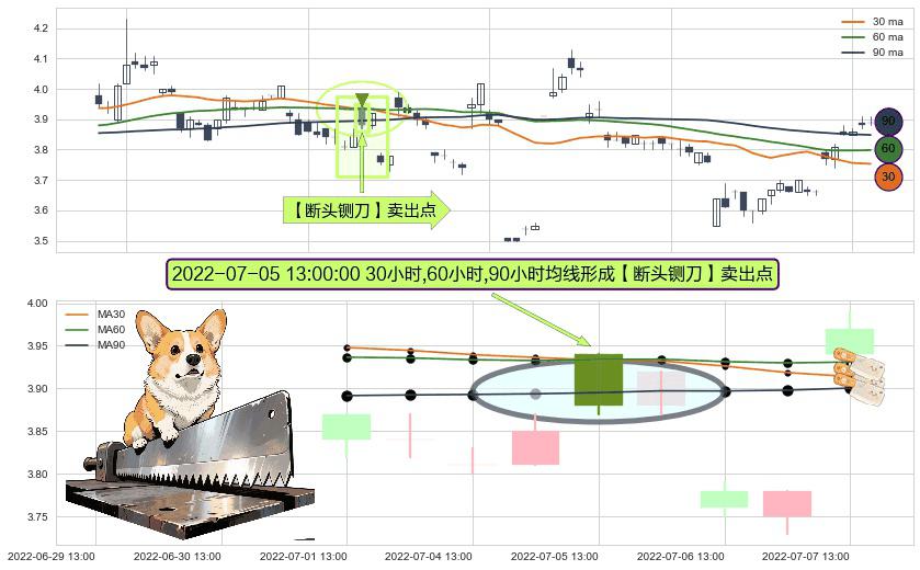 ⚀ 2022-07-05 13:00:00小时显现 30小时-60小时-90小时均线 【断头铡刀】卖出点 看空信号,后市看跌,卖出