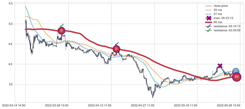 ⚂ 2022-05-19 14:00:00小时突然冒出一根大阳线,一下子顶穿三条均线且收盘价收在各条均线之上
