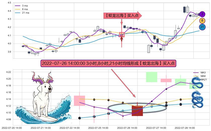 ⚀ 2022-07-26 14:00:00小时显现 3小时-8小时-21小时均线 【蛟龙出海】买入点 看多信号,后市看涨,买入