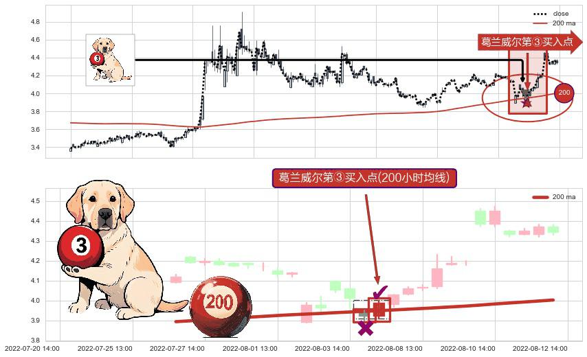 ⚀ 2022-08-04 14:00:00-小时显现 葛兰威尔均线 200小时均线 第③买入点 上升趋势的中继信号,后市看涨,买进信号