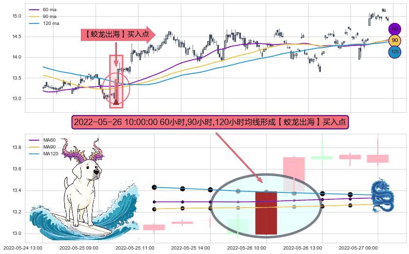 ⚀ 2022-05-26 10:00:00小时显现 60小时-90小时-120小时均线 【蛟龙出海】买入点 看多信号,后市看涨,买入