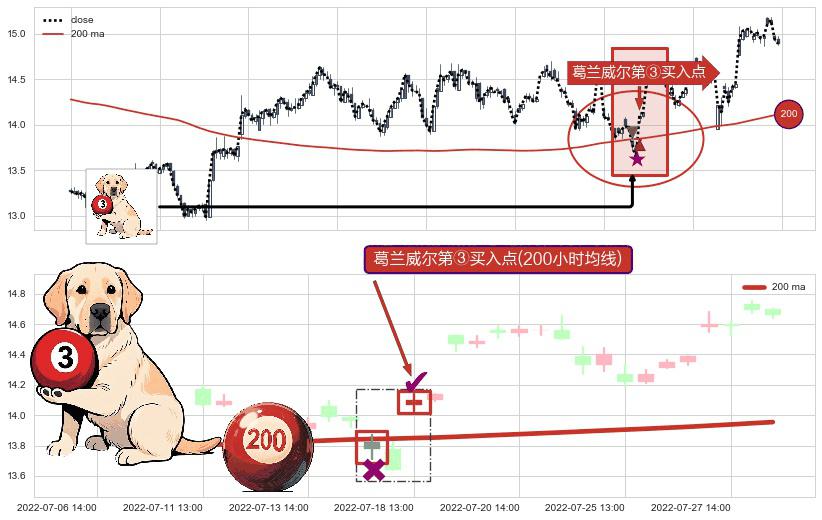 ⚀ 2022-07-18 13:00:00-小时显现 葛兰威尔均线 200小时均线 第③买入点 上升趋势的中继信号,后市看涨,买进信号