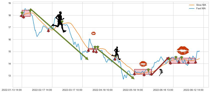01-21 11:00至03-23 10:00 慢线与快线呈空头排列, 慢线与快线接触少,无缠绕