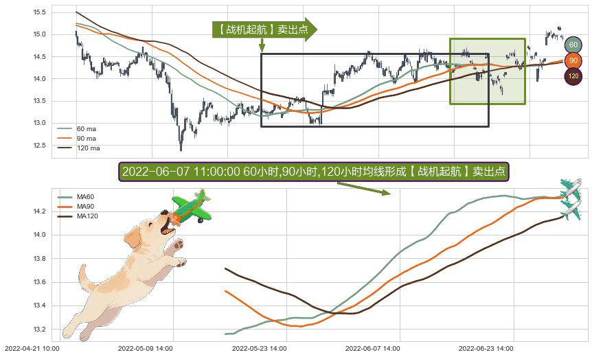 ⚀ 2022-05-16 11:00:00小时-2022-07-08 14:00:00小时显现 60小时-90小时-120小时均线 【战机起航】卖出点 看空信号,后市看跌,卖出