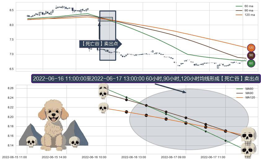 ⚀ 2022-06-16 13:00:00-小时至2022-06-17 13:00:00-小时显现 60小时-90小时-120小时均线 【死亡谷】卖出点 看空信号,后市看跌,卖出
