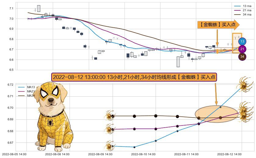 ⚀ 2022-08-12 13:00:00小时显现 13小时-21小时-34小时均线 【金蜘蛛】买入点 看多信号,后市看涨,买入