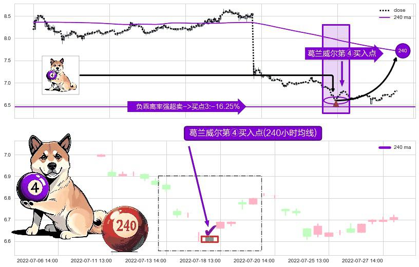 ⚀ 2022-07-15 14:00:00-小时显现 葛兰威尔均线 240小时均线 第④买入点 下降趋势均值回复的短线反弹信号,后市看涨,买进信号