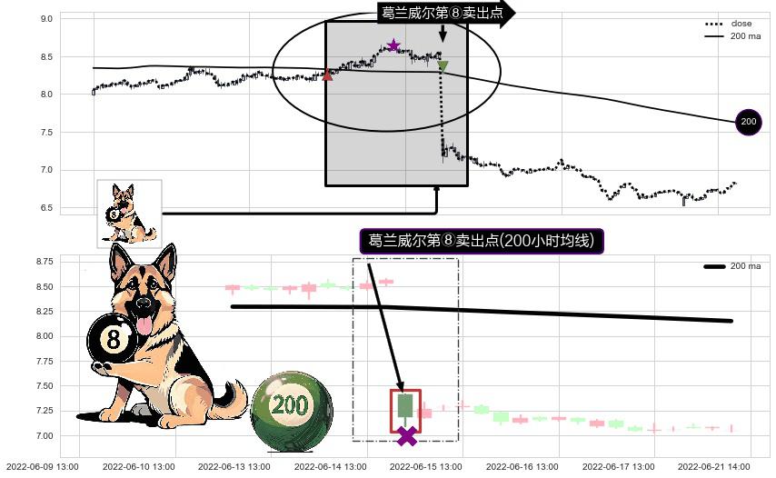 ⚀ 2022-06-15 09:00:00-小时显现 葛兰威尔均线 200小时均线 第⑧卖出点 下降趋势的中继信号,后市看跌,卖出信号