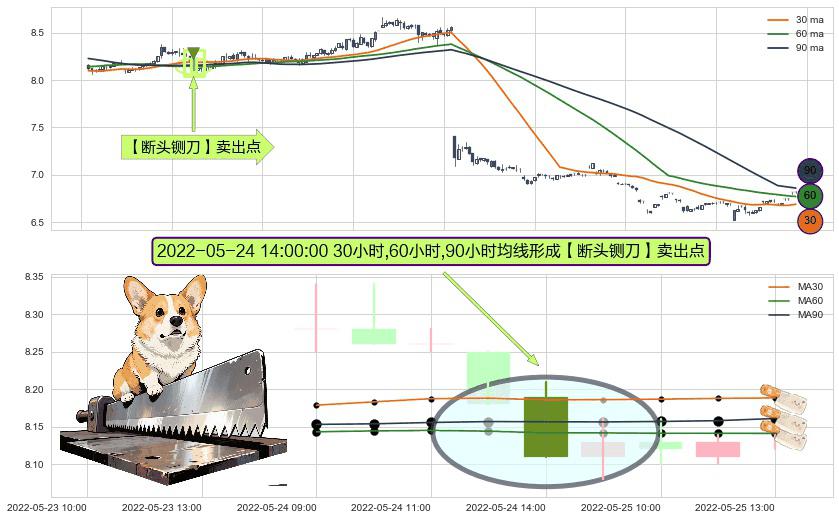 ⚀ 2022-05-24 14:00:00小时显现 30小时-60小时-90小时均线 【断头铡刀】卖出点 看空信号,后市看跌,卖出