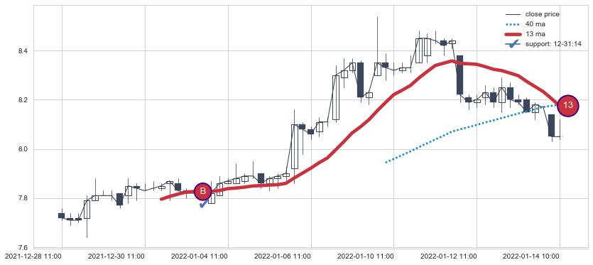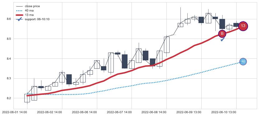 ⚀ 2022-06-14 14:00:00小时-2022-08-12 14:00:00小时显现 60小时-90小时-120小时均线 【高山滑雪】买入点 看多信号,后市看涨,买入