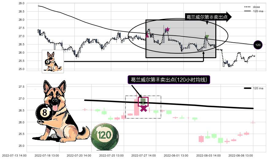 ⚁ 120小时均线 第⑧卖出点 属于 均线服从 信号,属于趋势运行的【常态】即信号期望为下降趋势的中继