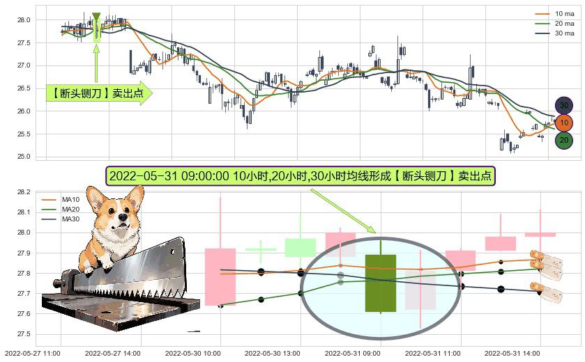 ⚀ 2022-05-31 09:00:00小时显现 10小时-20小时-30小时均线 【断头铡刀】卖出点 看空信号,后市看跌,卖出