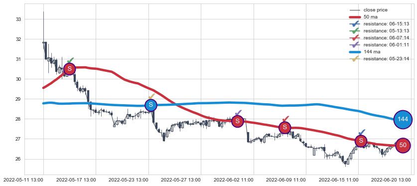 ⚂ 2022-07-04 13:00:00-小时均线向上突破,2022-07-26 14:00:00-小时重新下穿均线破位,均线阻力再次生效