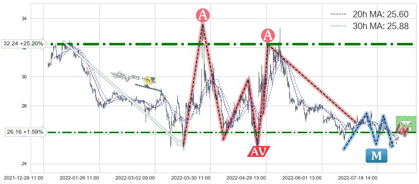 ♘ 阻力价格位26.16,可信任强度65.64%,距离最后交易2022-08-12 14:00形成的收盘价格25.75相差 +1.59%
