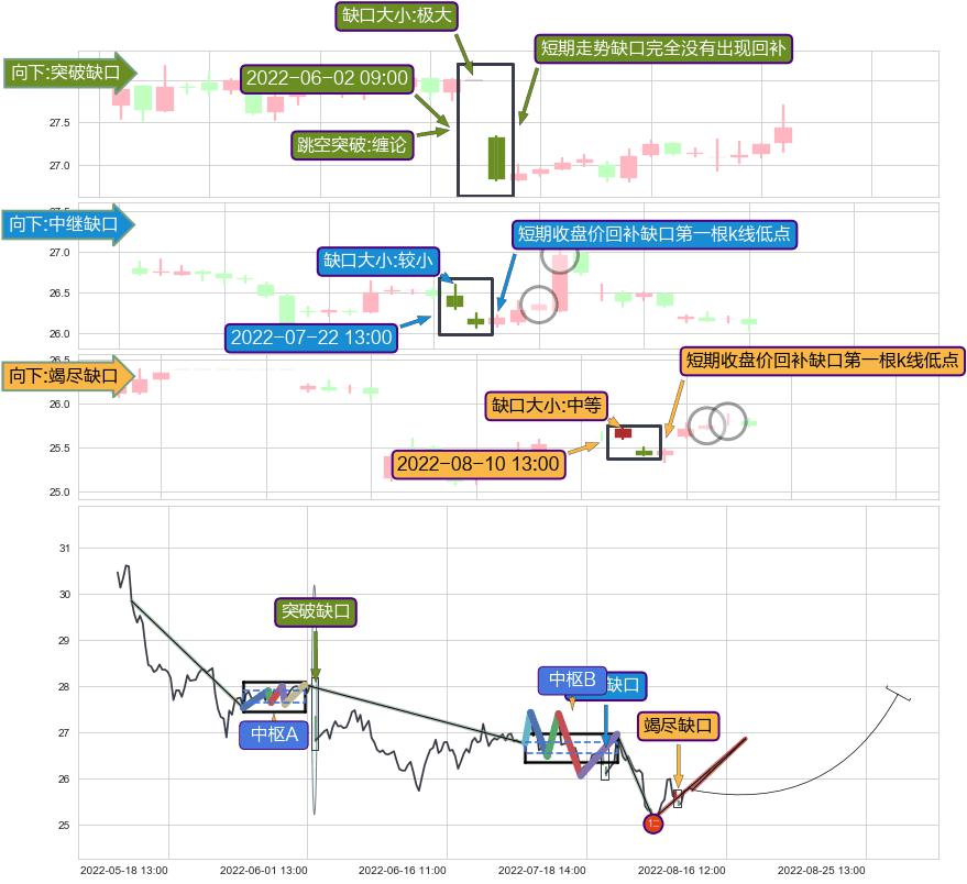 ➢ 2022-08-10 13:00形成:向下跳空【竭尽】缺口