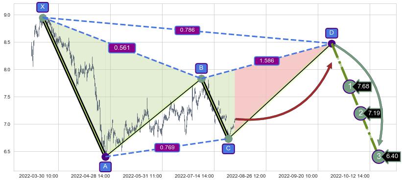 ➣ D点拟合预测价格8.47,距离最后交易收盘价格7.09相差 +19.53%