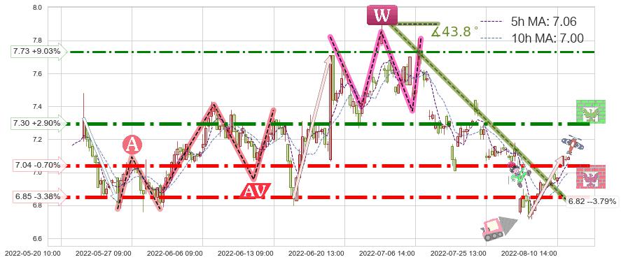 ♘ 阻力价格位7.30,可信任强度88.73%,距离最后交易2022-08-12 14:00形成的收盘价格7.09相差 +2.90%