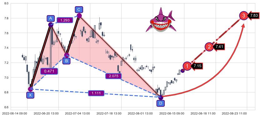 ➣ 已完成【鲨鱼】形态起点X: 06-14:11, 终点D: 08-03:14, 共84交易小时