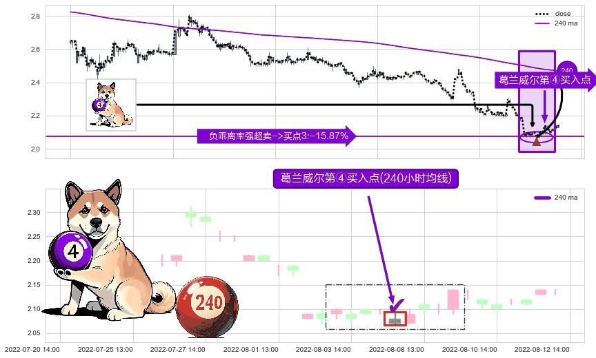 ⚀ 2022-08-05 13:00:00-小时显现 葛兰威尔均线 240小时均线 第④买入点 下降趋势均值回复的短线反弹信号,后市看涨,买进信号