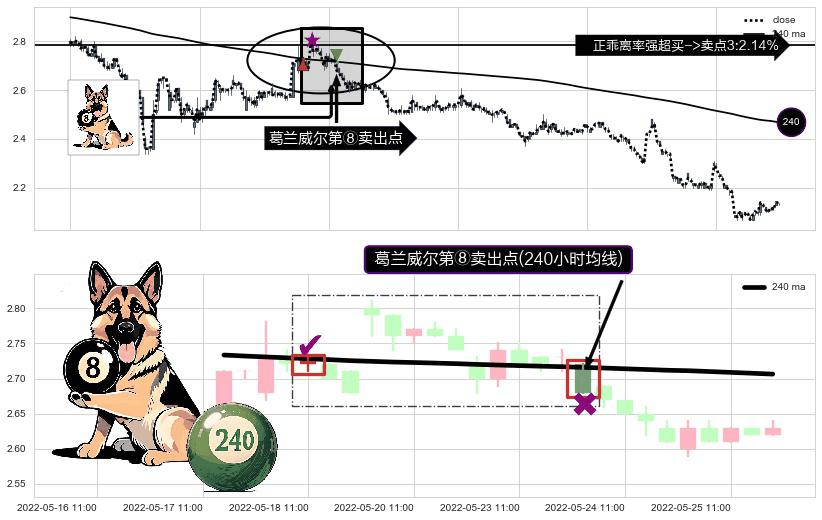 ⚀ 2022-05-24 09:00:00-小时显现 葛兰威尔均线 240小时均线 第⑧卖出点 下降趋势的中继信号,后市看跌,卖出信号