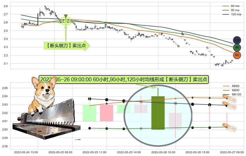 ⚀ 2022-05-26 09:00:00小时显现 60小时-90小时-120小时均线 【断头铡刀】卖出点 看空信号,后市看跌,卖出