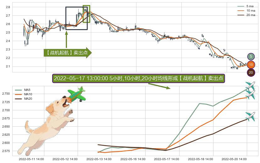 ⚀ 2022-05-13 11:00:00小时-2022-05-20 14:00:00小时显现 5小时-10小时-20小时均线 【战机起航】卖出点 看空信号,后市看跌,卖出