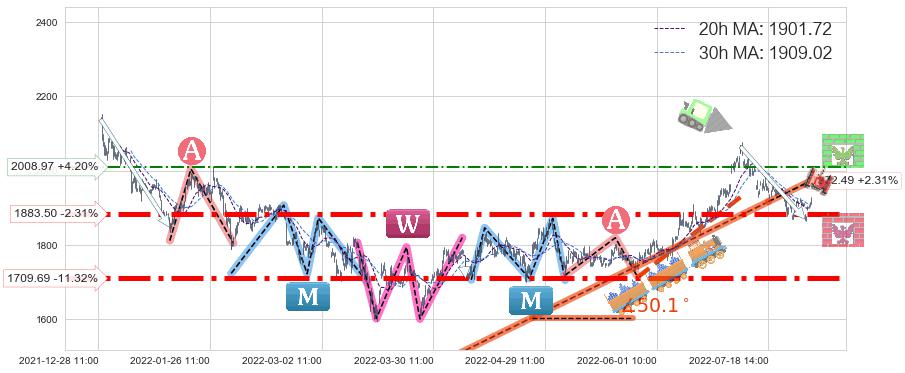♞ 20小时均线:1901.72,30小时均线:1909.02→ 快线<慢线