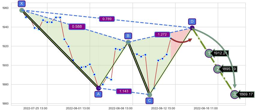 ➣ D点拟合预测价格1938.86,距离最后交易收盘价格1928.00相差 +0.56%