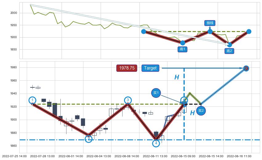 ➢ 【买1】: 激进型 买点 →(08-12:14: 1923.96 )形成突破双重底【反转】形态