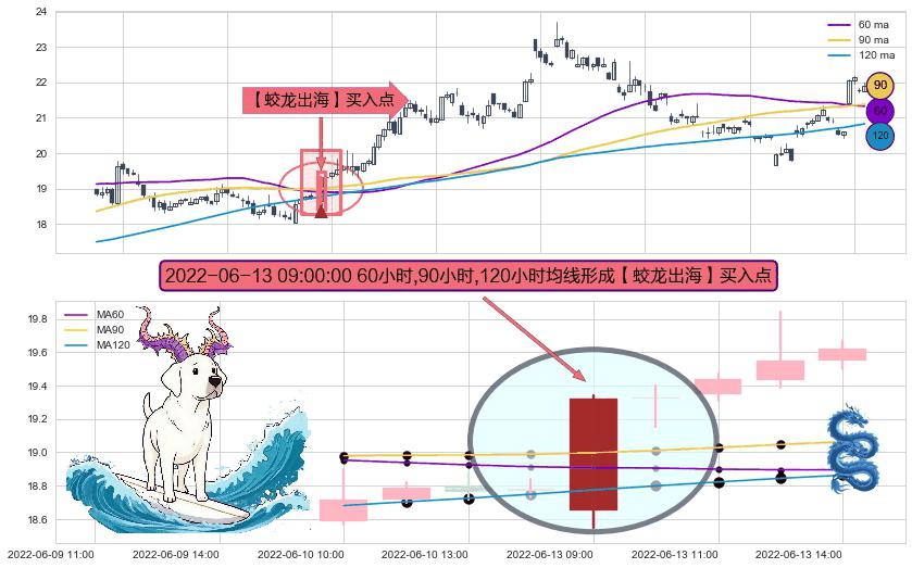 ⚀ 2022-06-13 09:00:00小时显现 60小时-90小时-120小时均线 【蛟龙出海】买入点 看多信号,后市看涨,买入