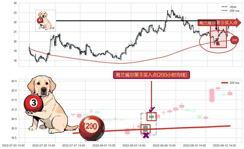 ⚀ 2022-08-04 13:00:00-小时显现 葛兰威尔均线 200小时均线 第③买入点 上升趋势的中继信号,后市看涨,买进信号